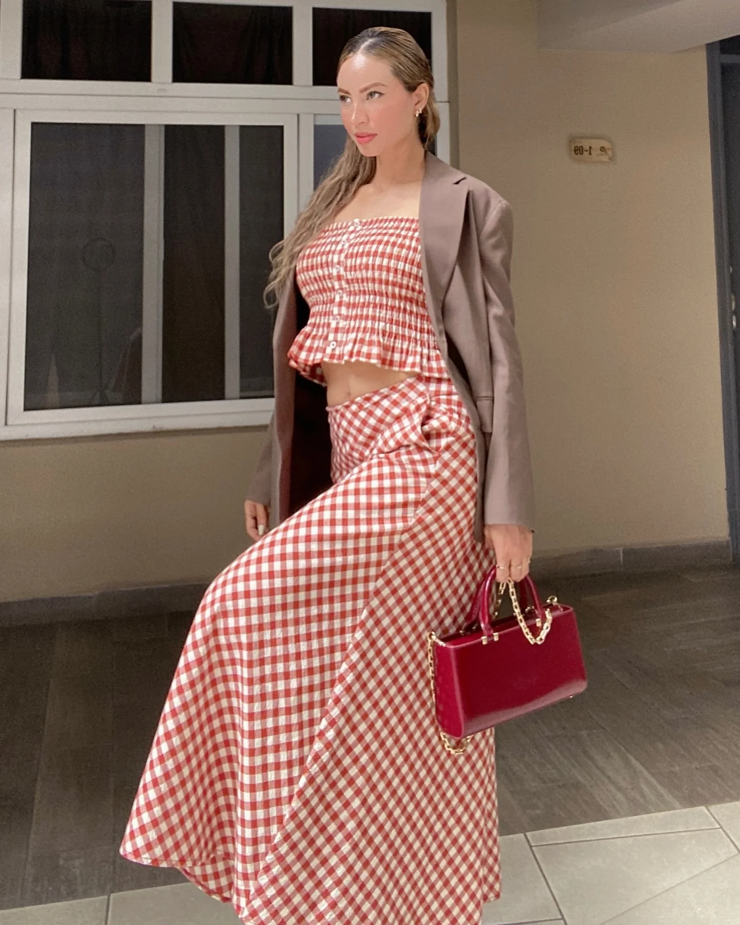 This Korean burgundy skirt set blends modern tailoring with timeless feminine charm, offering a polished look for work, dates, and special events. Crafted for flattering lines and comfortable wear, this...