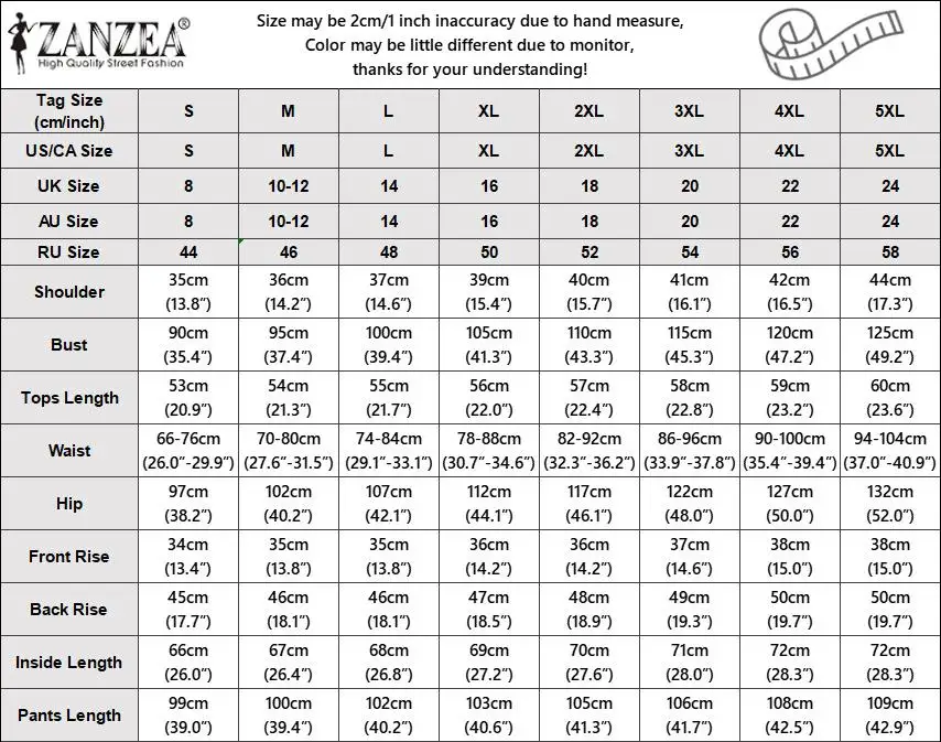 | Package included:1 Suit(Blouse+Pants) Material:100% Polyester Colors:Black,Cyan,Red Sleeve Length:Sleeveless Neckline:O-Neck Pattern:Floral Prints Length:Ankle Length Buckle chain:With Front Zipper,Button Down Front Thickness:Thin Style:Leisure,Bohemian,Retro,Europe,National Season:Spring,Summer,Autumn,Winter Occasion:Family,Party,Beach,Wedding,Holiday,Employment Label: Yes Attentions: 1.The Real Object May Exist Slightly Colors Differences Compared To Images As Different Computers Display.Caution If Minding,Thanks. 2.There Might Be A Manual Measuring 1-3 cm Error.Sorry For Any Inconvenience. 3.Please Prevail On Real Item, Model Images For Reference Only. 4.Attention!!!Please check the size chart carefully before placing the order.