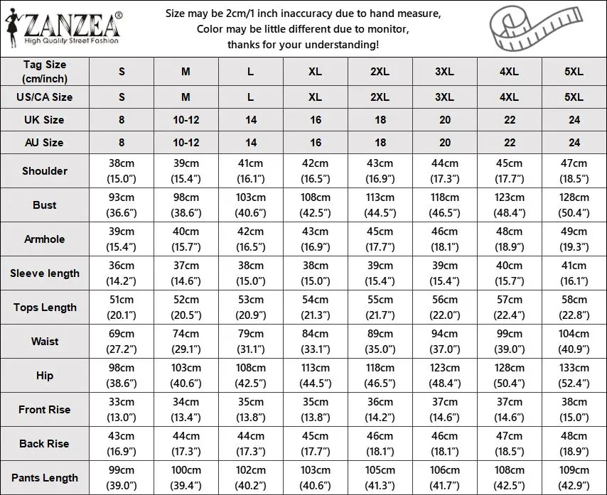 | Package included:1 Suit(Blouse+Pants) Material:100% Cotton Colors:Black,Orange,Light Blue,Yellow Sleeve Length:Half Sleeve Neckline:O-Neck Pattern:Solid Color Length:Ankle Length Buckle chain:With Side Zipper,Button Down Front(Decorative) Thickness:Thin Decoration:Side Pockets Features:Puff Sleeve Style:Leisure,Bohemian,Retro,Europe,All-Match Season:Spring,Summer,Autumn,Winter Occasion:Family,Party,Beach,Wedding,Holiday,Employment Label: Yes Attentions: 1.The Real Object May Exist Slightly Colors Differences Compared To Images As Different Computers Display.Caution If Minding,Thanks. 2.There Might Be A Manual Measuring 1-3 cm Error.Sorry For Any Inconvenience. 3.Please Prevail On Real Item, Model Images For Reference Only. 4.Attention!!!Please check the size chart carefully before placing the order.