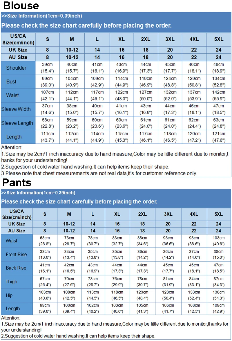 • Please allow a manual measuring error of 1–3 cm; refer to the size chart carefully before ordering.